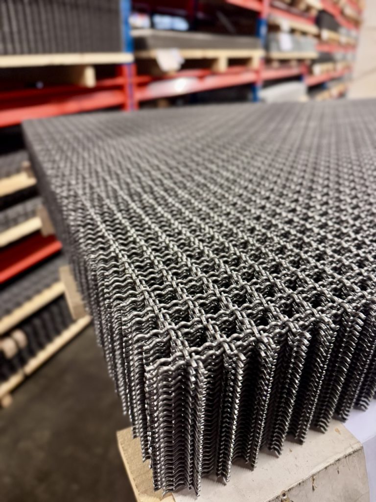 De vågformade trådarna gör att gallret håller sin maskstorlek även vid belastning, vibrationer och rörelser. Det gör det till ett bra val i applikationer där man vill kombinera stabilitet med en viss flexibilitet – jämfört med svetsat galler.