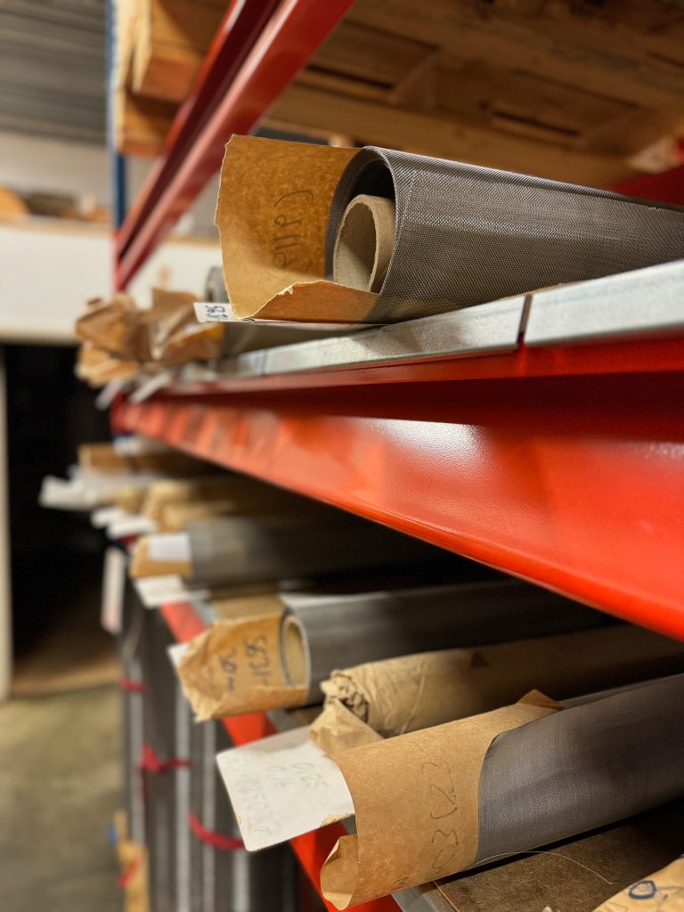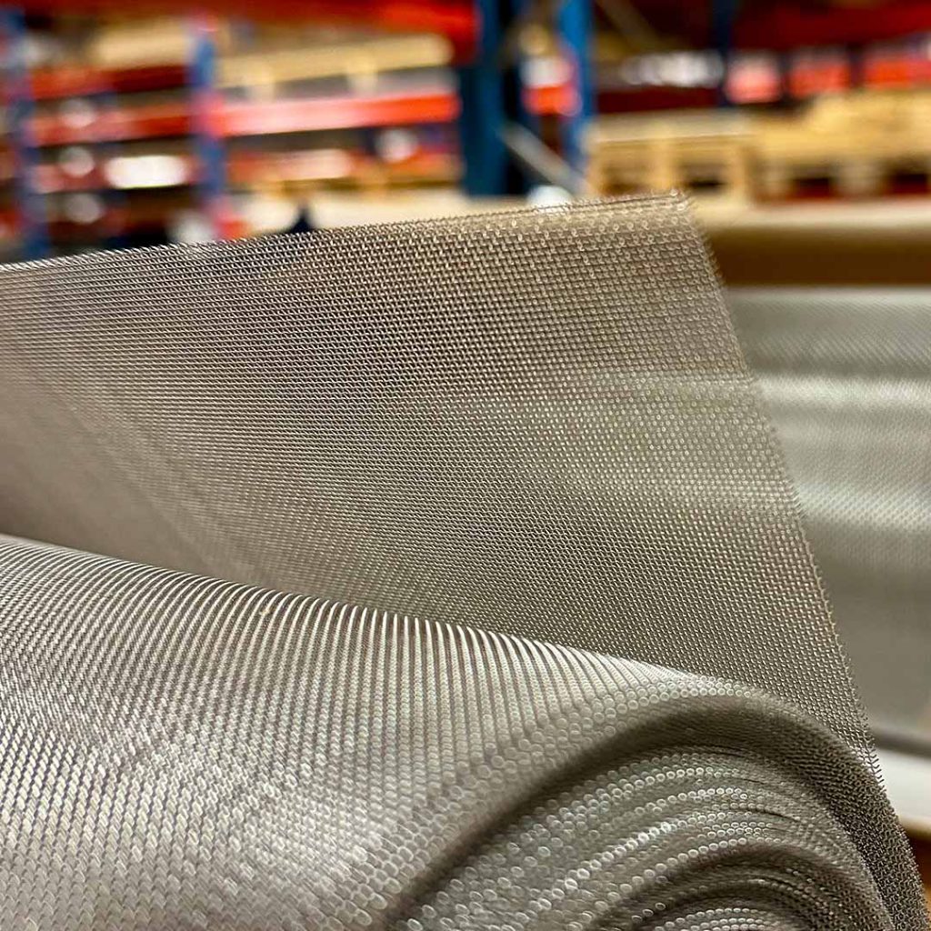 Vi lagerhåller metallduk på rulle i obehandlat stål, förzinkat stål, rostfritt stål (1.4301), syrafast stål (1.4401) och mässing.